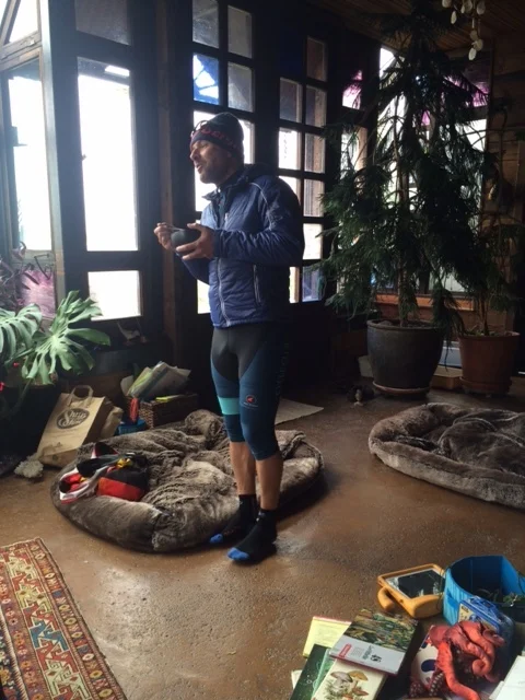 Inside, Hilary hade made the best chili I have ever tasted and there we ate, drank, relaxed and listened to some bitchin’ 80’s vinyl, courtesy of our host and the Free Box. The mood was so perfect and cozy, that it made it hard to imagine that we would have to head back out into what was now a portrait of wet mud and blowing snow. Ahhh yeahhh!!!