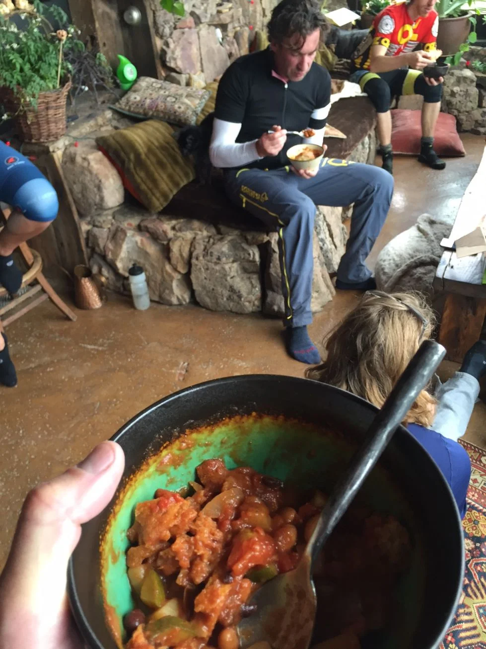At the top we turned on dirt and continued on. Scott and I got to ride together and chat eventually bringing us to a nice little cabin that was all set for us to stop, eat and mark the halfway point of the ride. All this was done courtesy of Max, Hilary and their friends.