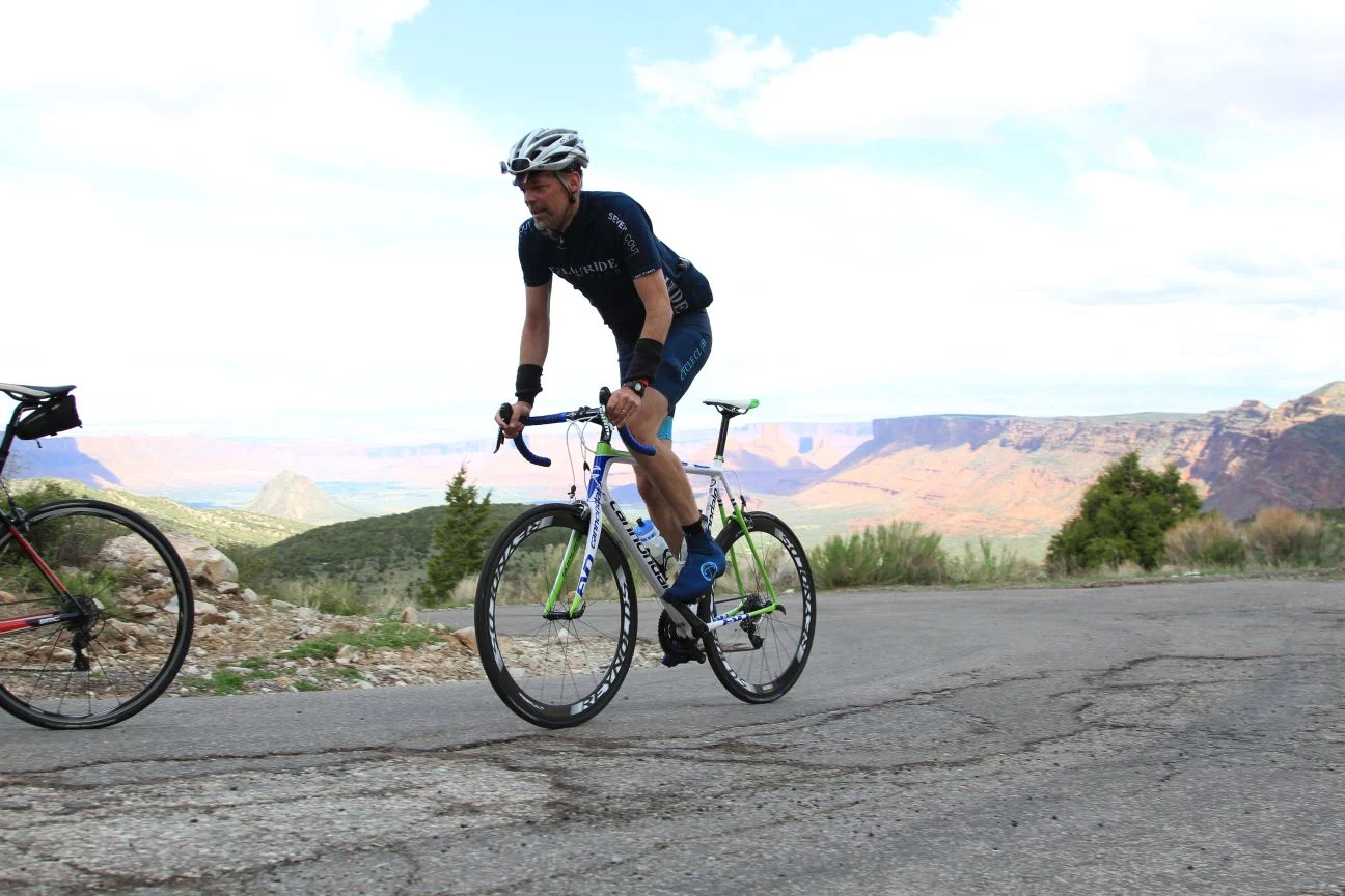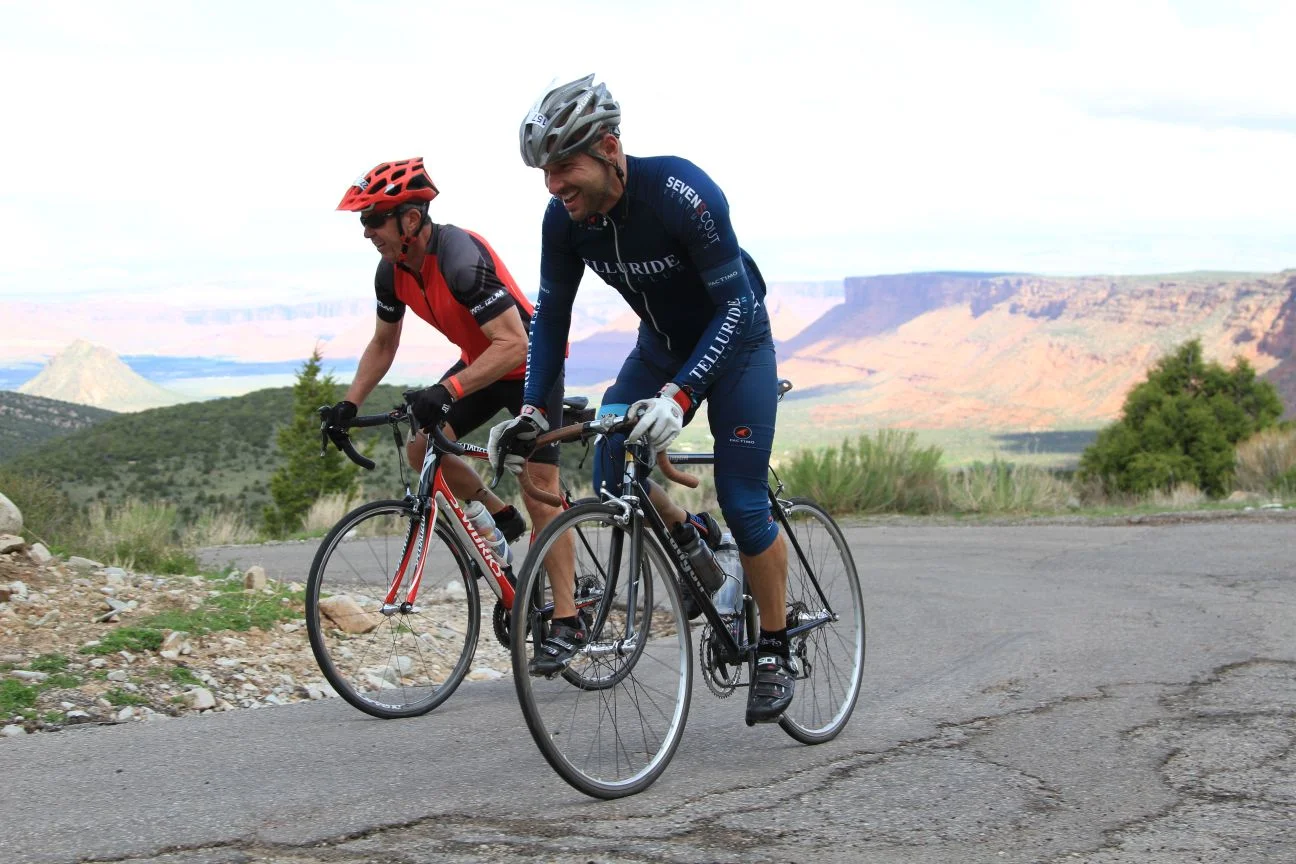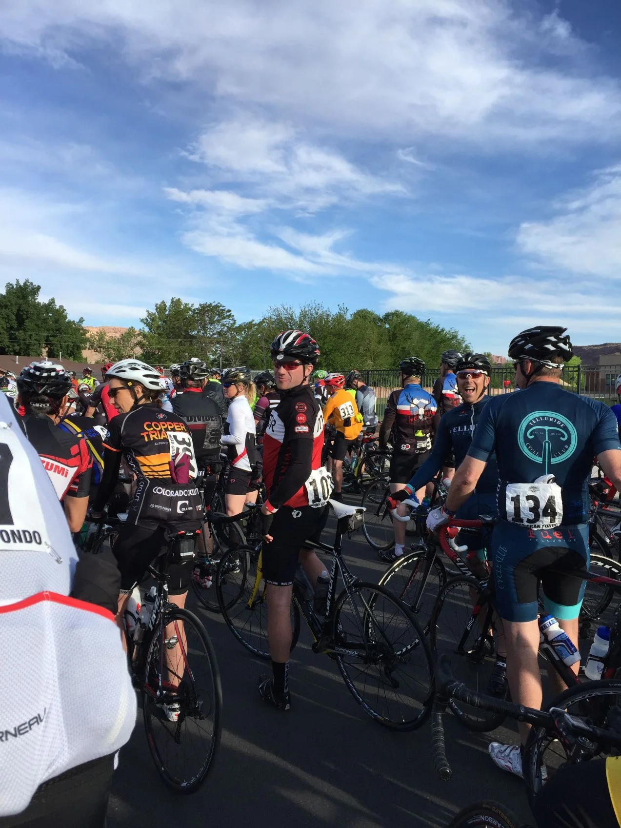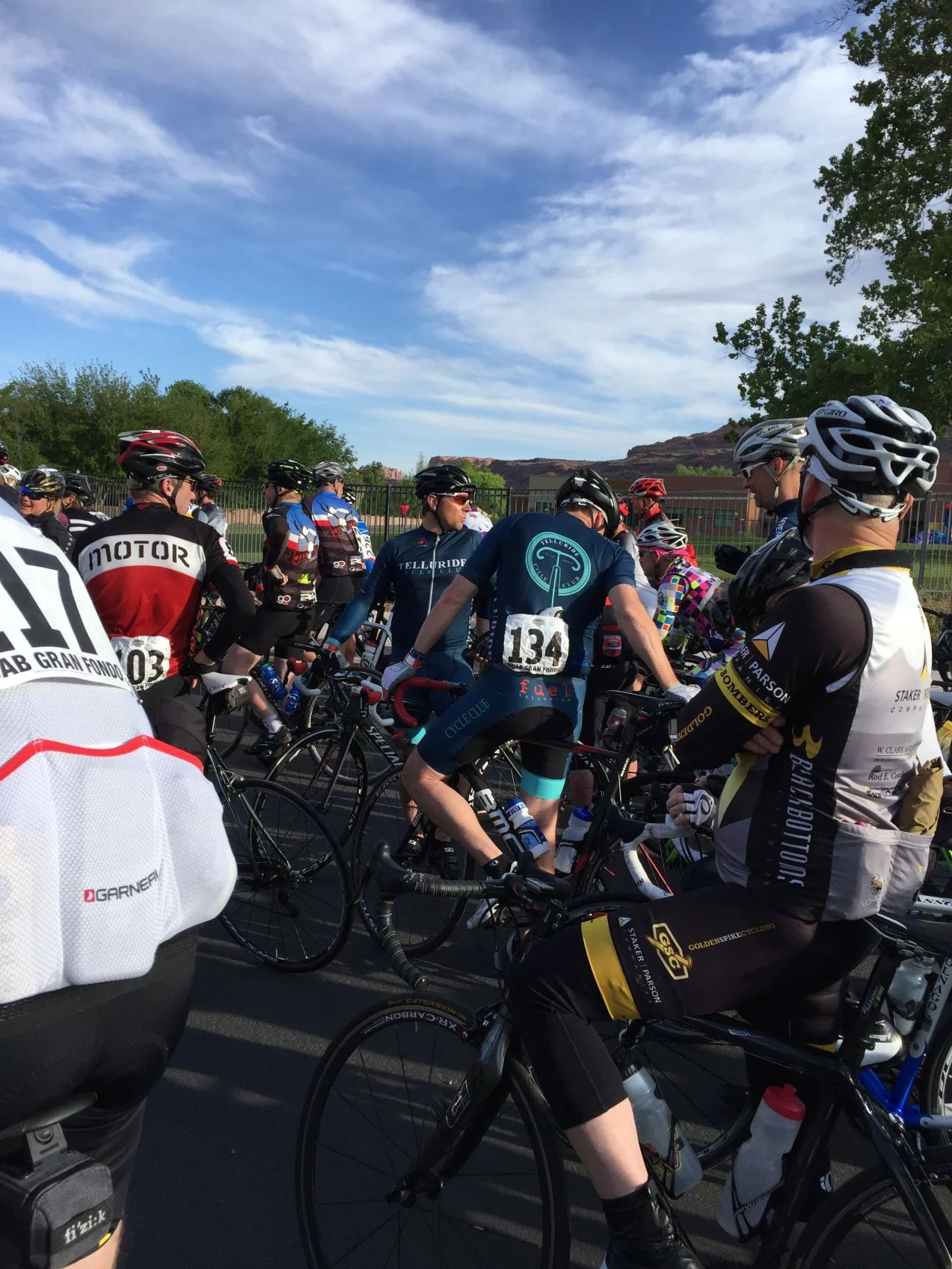 So the group surged and fluctuated with the characteristics of a rubber band. As Telluriders, we stayed close to the front and hugged the yellow line. No sense in getting boxed in. With the erratic pace and not 20 miles in, I was already in the red, but once we turned and started the false flat ascent, the pace settled and everyone found a group to ride in. We were spread all over, Chris, Noah and Tim were ahead of me, Jesse, Oz and Becca close behind.