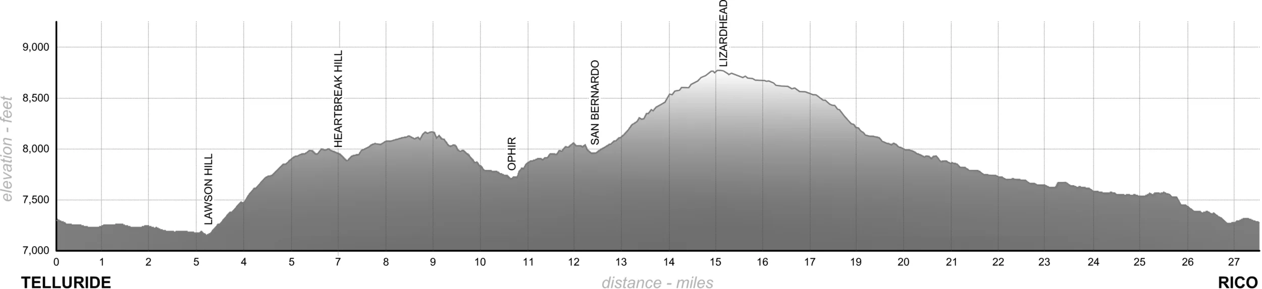 This ride takes Highway 145 south towards Lizardhead (see description). Upon arriving at the top of the pass, proceed down the backside of the hill. The upcoming portion of highway is a slight downhill, which gives one the impression of being much stronger than they really are. Should your comrades be with you, form a paceline and practice your team time trial formation because this is the best stretch of highway for such purposes.